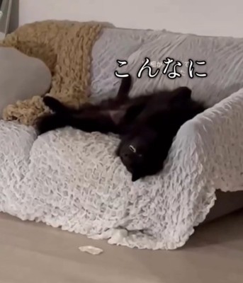 とある日は、ソファーの上で足を広げ、気持ちよさそうに眠る悟空くんの姿があったそう。ソファーの上では、足を広げて眠るスタイルなのでしょうか?ポンコツというよりは、リラックスして眠る姿がかわいらしいですね。