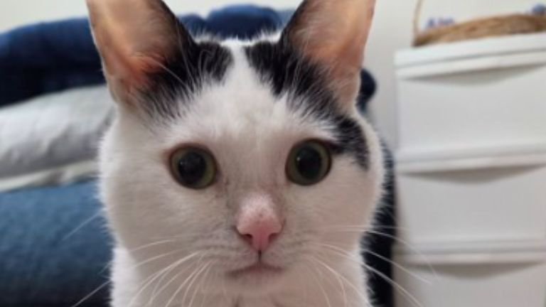 今回、Xに投稿したのは「ちぼ」さん。登場したのは、白黒猫のこもちゃんです。