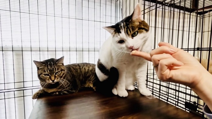 まずはワクチン接種とウイルス検査のため、2ヶ月間、仲良し組で分かれてケージの中で生活したそうです。出会った頃は「シャー」と威嚇していた炎くんは、保護した頃にはすっかり甘えん坊になっていたのだとか。一方の寅次郎くんは、まだ人馴れしておらず触らせてくれなかったそうです。