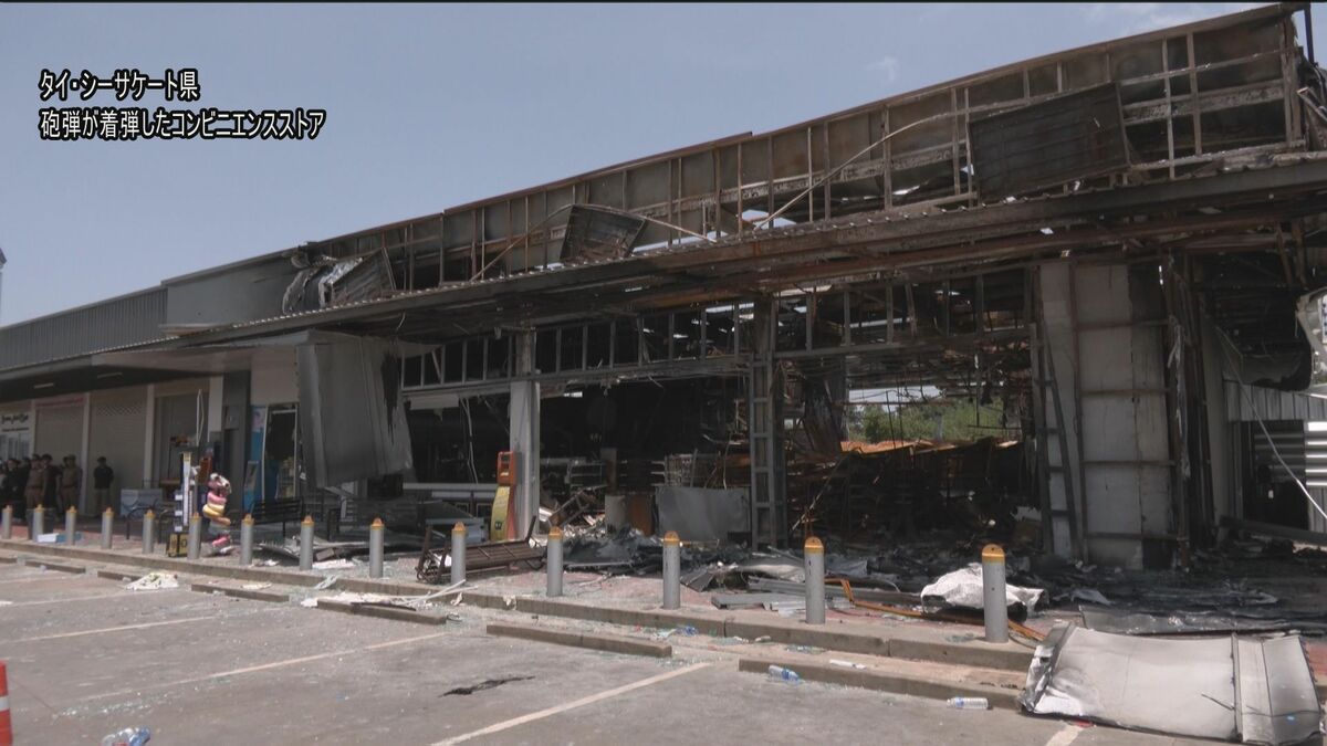 一行は、東部・シーサケート県で、砲弾が直撃したとされるコンビニエンスストアなどを視察しました。