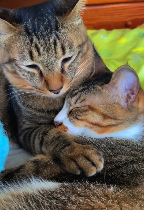 @momotanchan モカとマロン 今日もぴったりくっついてお昼寝 #モカとマロン#猫のいる暮らし#猫可愛い#三つ子の兄と弟#三つ子の末っ子はチョコちゃん♬ dingding - SH MUSIC