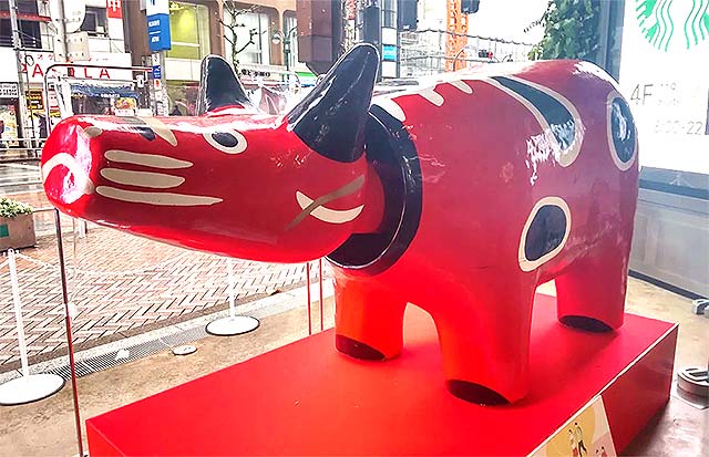 迫力満点!高さ1.3m 巨大 赤べこフォトスポット