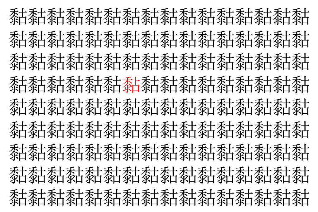 【脳トレ】「𪏻」の中に紛れて1つ違う文字がある!?あなたは何秒で探し出せるかな??【違う文字を探せ!】