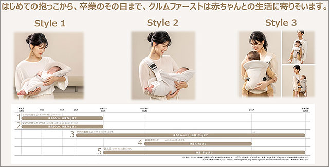 ―――アップリカブランドを手がけるニューウェルブランズ・ジャパン(本社:東京都港区)がそう推す 3WAY 抱っこひも「クルム ファースト」(1/1~発売)の注目ポイントをここでチェックしていこう↓↓↓