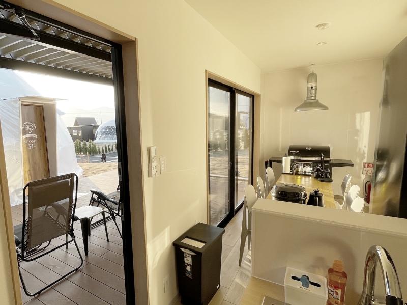 独立型のキッチンとダイニングは、プライベート空間ときちんと切り分けられた設計。オンとオフが自然に切り替わる導線は、滞在中のストレスを感じさせません。