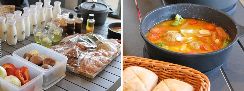 夕食は、地元食材を使ったBBQセットやすき焼きコースから。食材の持ち込みもOKなので、その日の即席シェフが料理の腕前を見せる場面も出てきそうです。