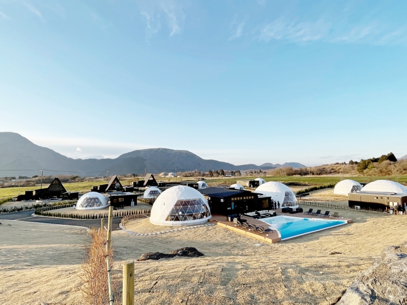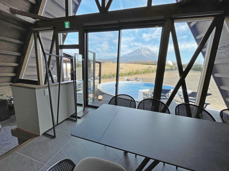 富士山の麓の広大な敷地内には、SNS映え必至のドームテントをはじめ、プライベートプールやドッグラン付きなどさまざまなタイプの客室が全23棟。そしてなんと、そのすべてが「富士山ビュー」なのも魅力のひとつです。