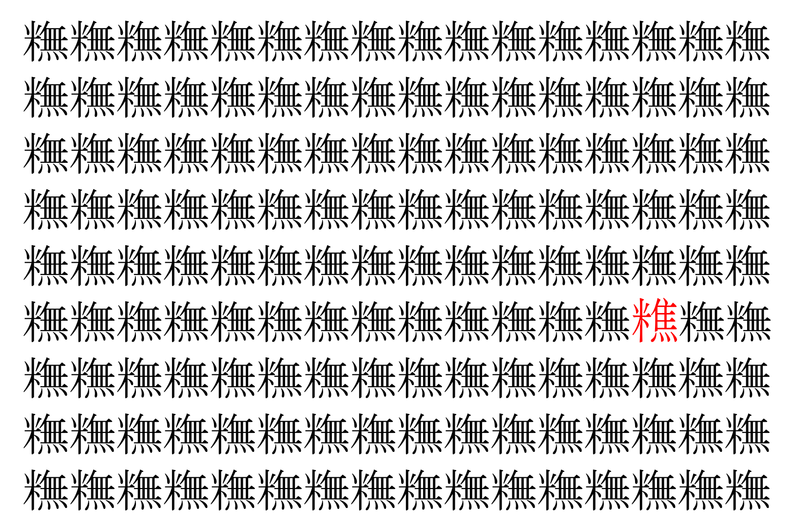 【脳トレ】「𥼣」の中に紛れて1つ違う文字がある!?あなたは何秒で探し出せるかな??【違う文字を探せ!】