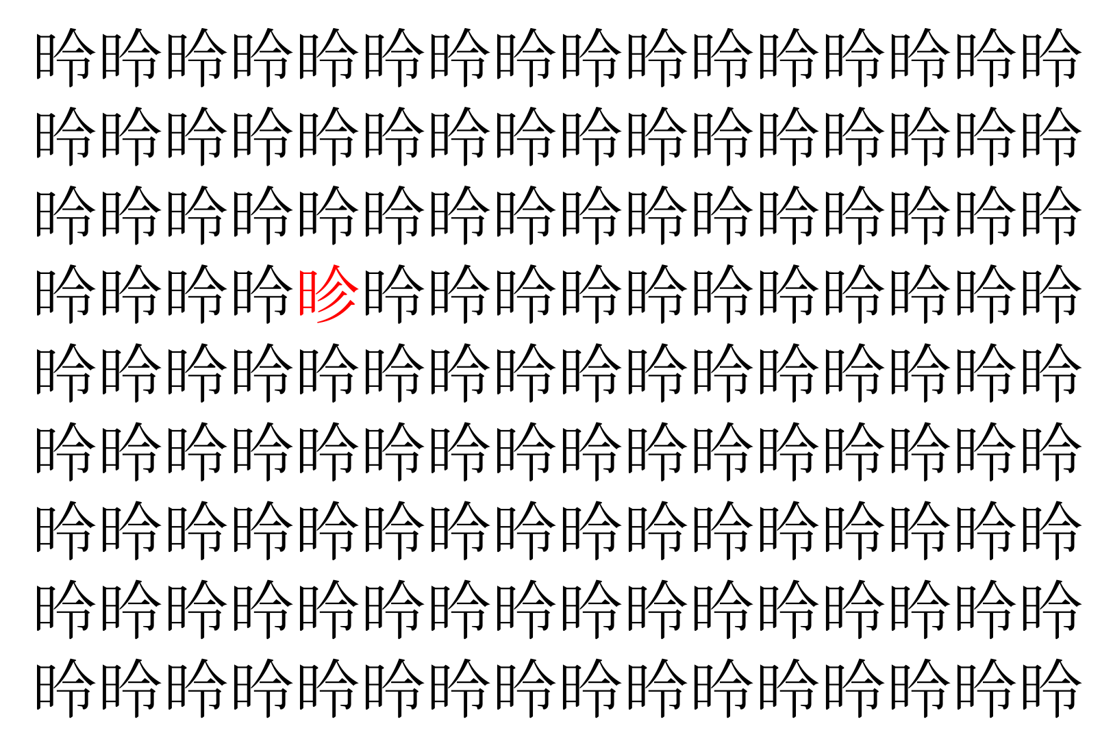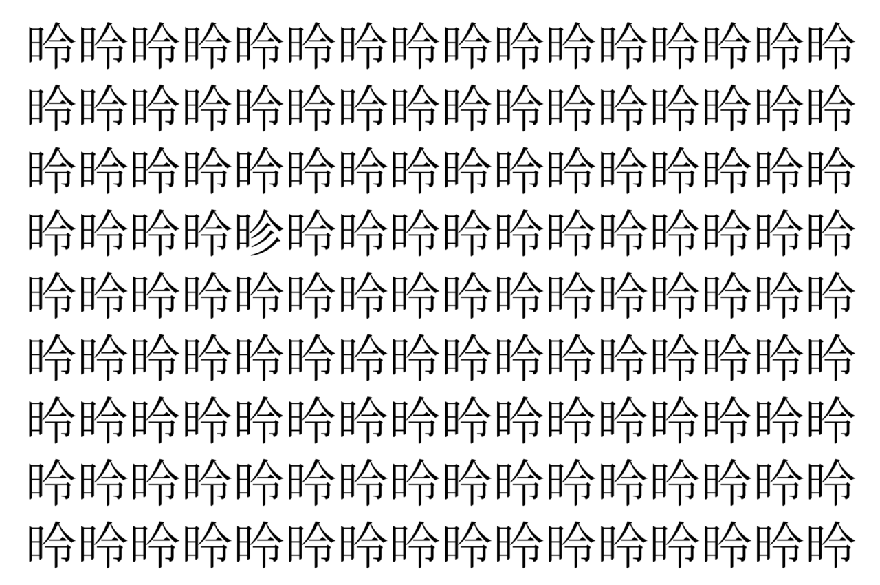 【脳トレ】「昤」の中に紛れて1つ違う文字がある!?あなたは何秒で探し出せるかな??【違う文字を探せ!】