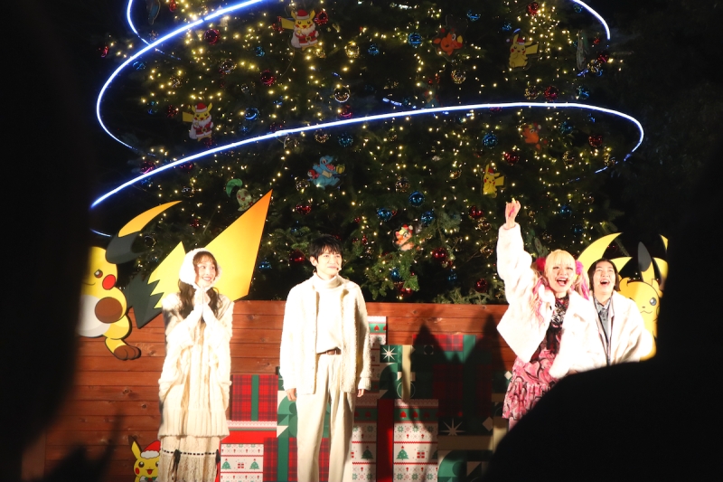 当日のゲストには俳優の本郷奏多さん、アイドル・タレントの百田夏菜子さん、お笑い芸人のエルフ 荒川さん・はるさんが登場し、クリスマスツリー点灯セレモニーや、『Pokémon LEGENDS Z-A』のバトル体験、クリスマスならではの思い出について語りました。