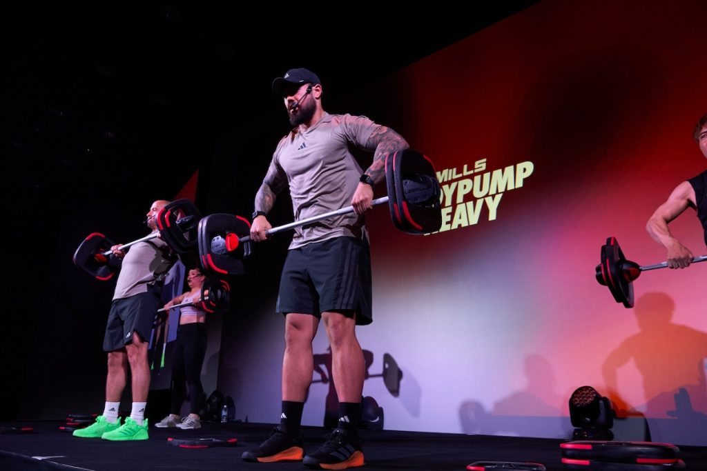 「BODYPUMP」に比べてスローテンポで少ないレップ数を行う、レズミルズの新しいウェイトトレーニングプログラム「BODYPUMP HEAVY」は、プレゼンターのダン・コーエン氏らと実施。ゆっくりと筋肉に負荷がかかった分、実践後に確実に筋肉が育っていることを実感できるプログラムとなった。