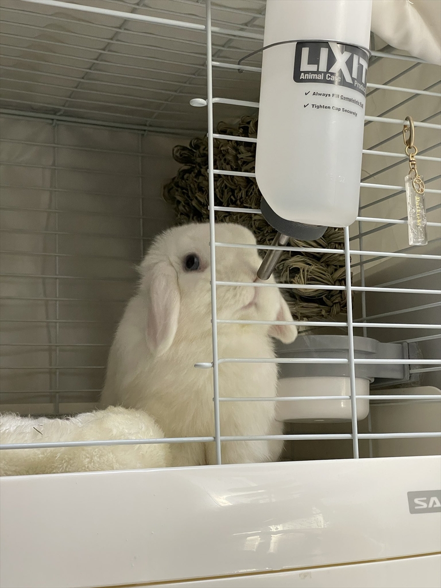 悩むウサギ。水を飲むか飲まないか考え込んでいる姿が話題に