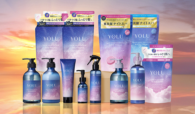 YOLU からは、シャンプー・トリートメント・アウトバスなどヘアケア商品8点に加え、人気のバスタブレットなどボディケア商品4点や、新発売のスキンケア商品がお試しできる4連サシェを含めた豪華16点セットが、35%OFF。