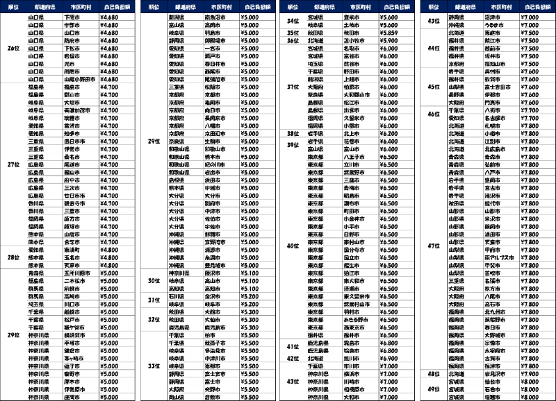自分の住んでいる自治体ではどの程度の負担が必要なのか。