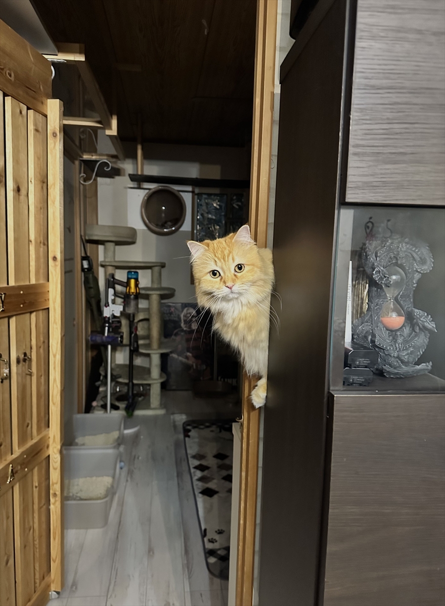 姿が見えないと思っていたところ、狭い隙間からひょっこり登場したそうです。