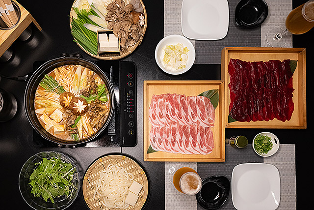 希望に応じて、この地域ならではの地産ジビエ鍋も選べる。