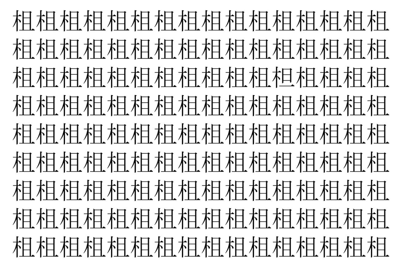 【脳トレ】「柤」の中に紛れて1つ違う文字がある!?あなたは何秒で探し出せるかな??【違う文字を探せ!】