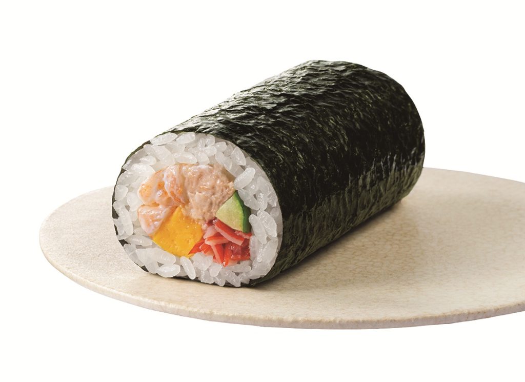 ツナマヨネーズ和え、海老マヨネーズ和え、カニカマなどで仕立てた恵方巻。前年よりも海老マヨネーズ和えを増量し食べ応えアップ!