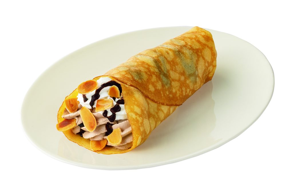 チョコホイップとホイップクリームの2つのクリームとバナナを包んだクレープ。クレープの内側にコーティングチョコをかけ、鬼のパンツを表現。
