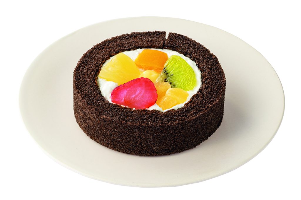 イチゴ、パイナップル、黄桃、キウイ、りんごという5種類のフルーツを使用した見た目も鮮やかなロールケーキ。