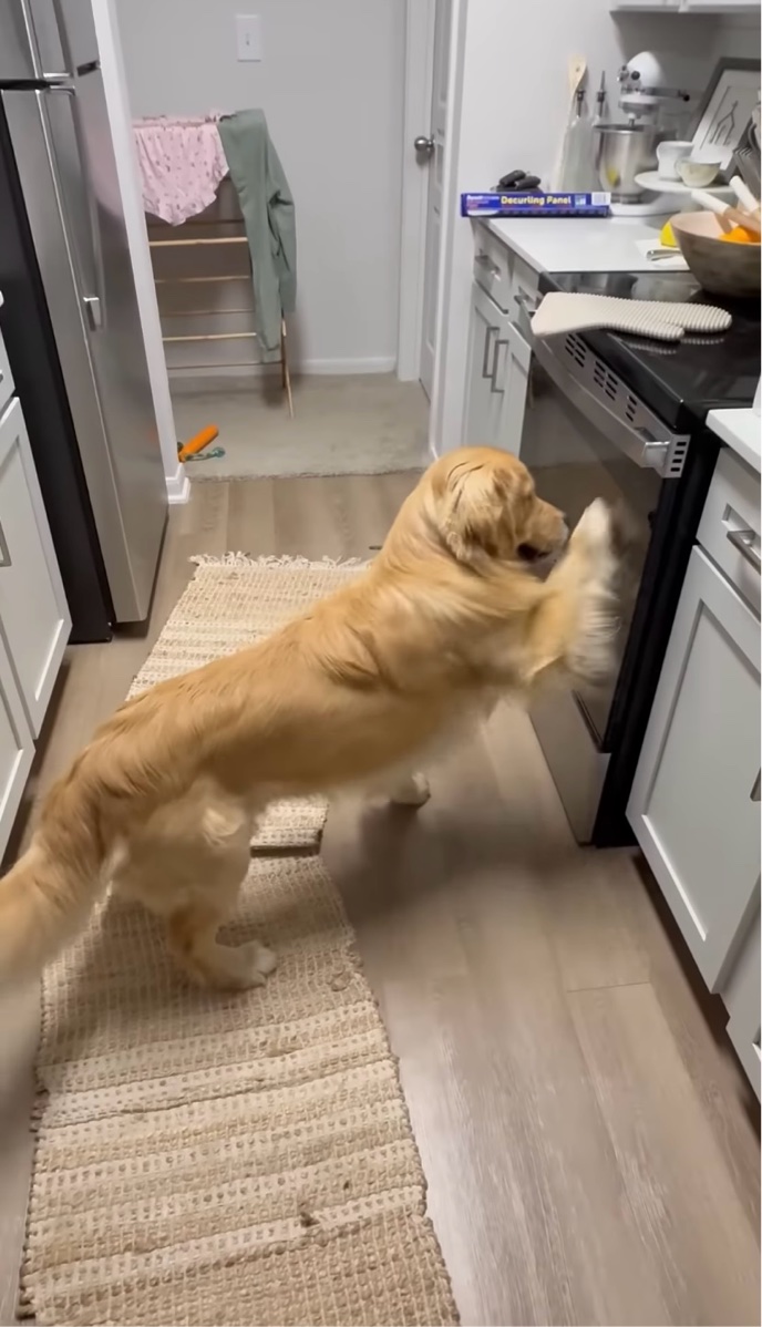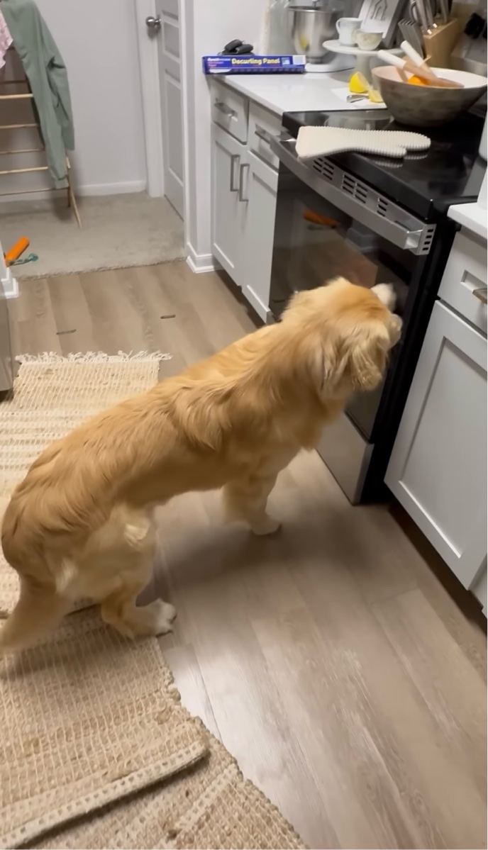 ゴールデンレトリバーがオーブンをカキカキ!その理由は・・扉の向こうに!?【アメリカ・動画】