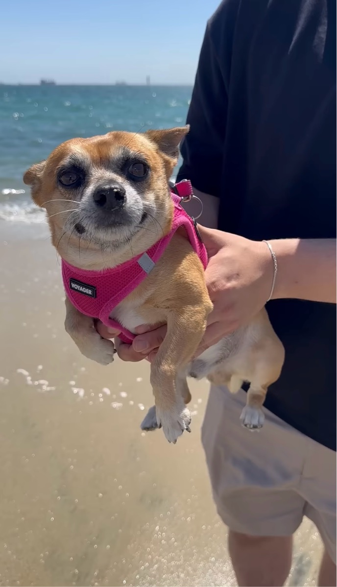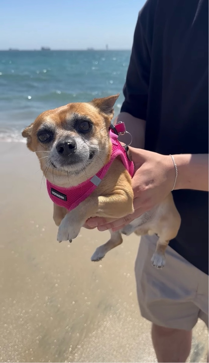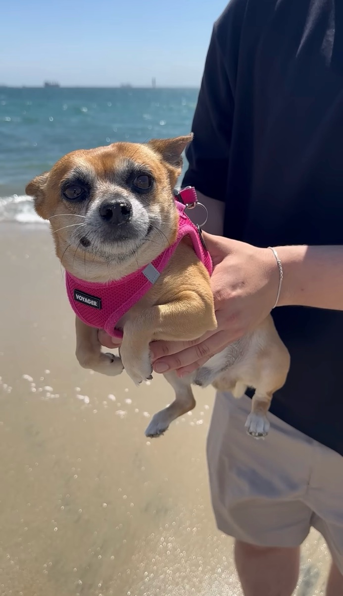 飼い主さんと一緒に大好きな海へ遊びにやって来た愛犬。