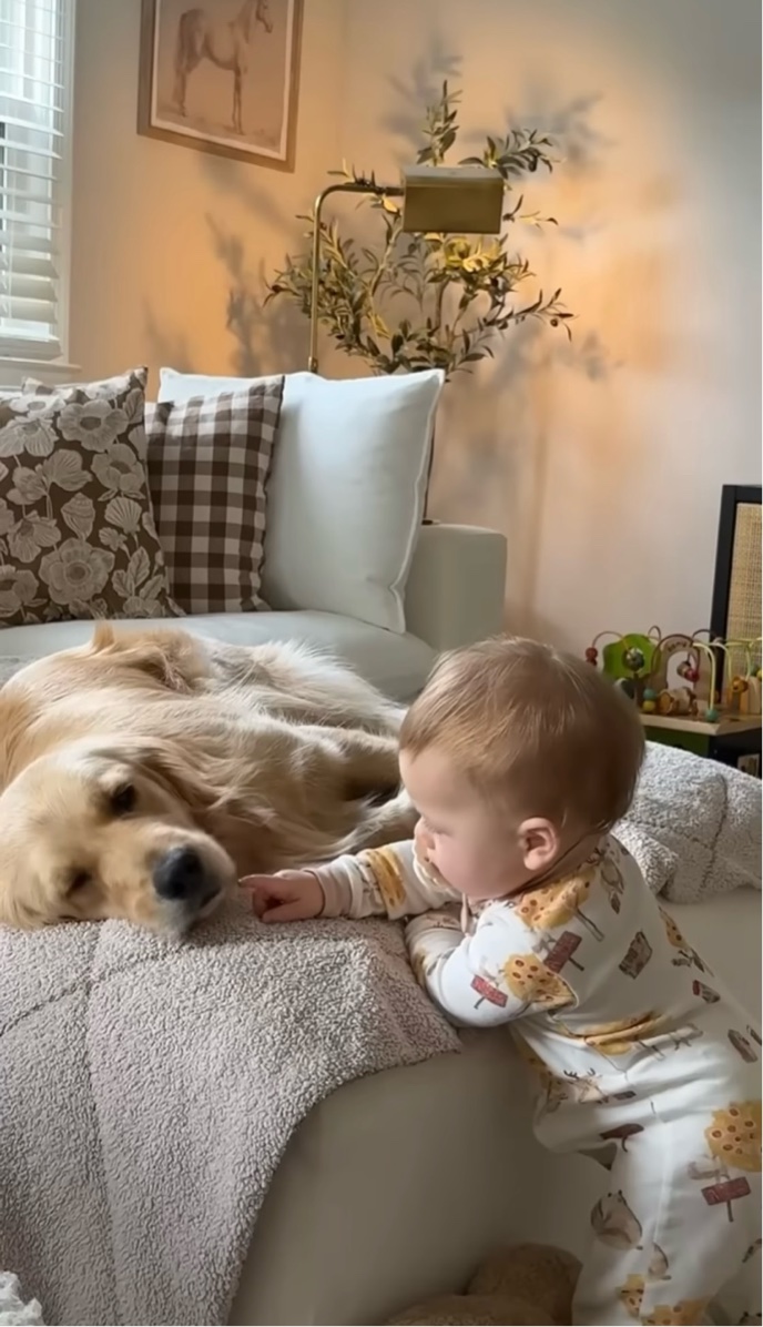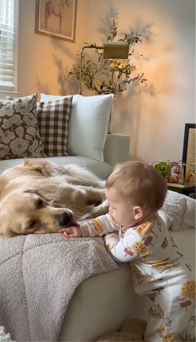 ふたりは親友。赤ちゃんが頭を寄せる相手は・・大好きなゴールデンレトリバー!【アメリカ・動画】