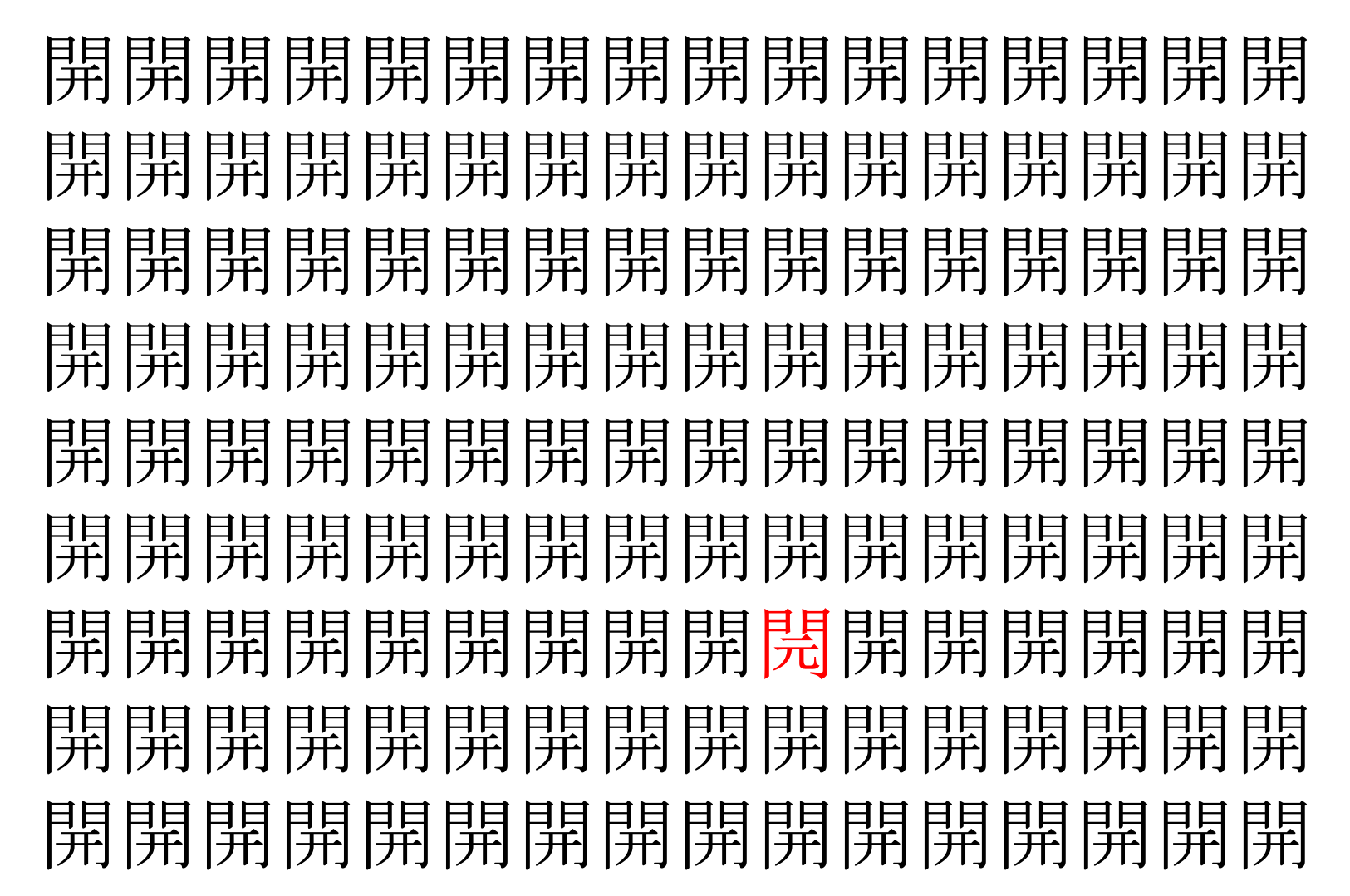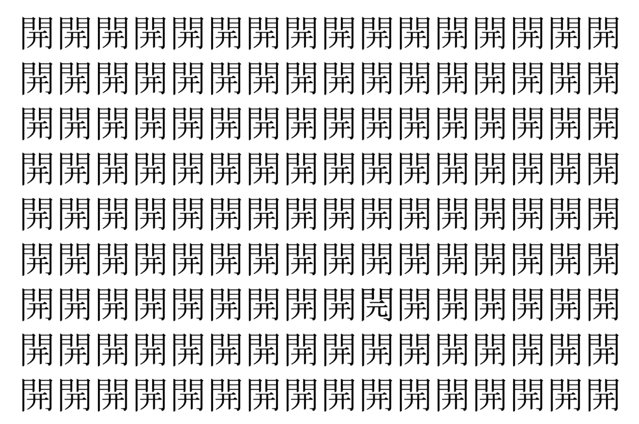 【脳トレ】「開」の中に紛れて1つ違う文字がある!?あなたは何秒で探し出せるかな??【違う文字を探せ!】