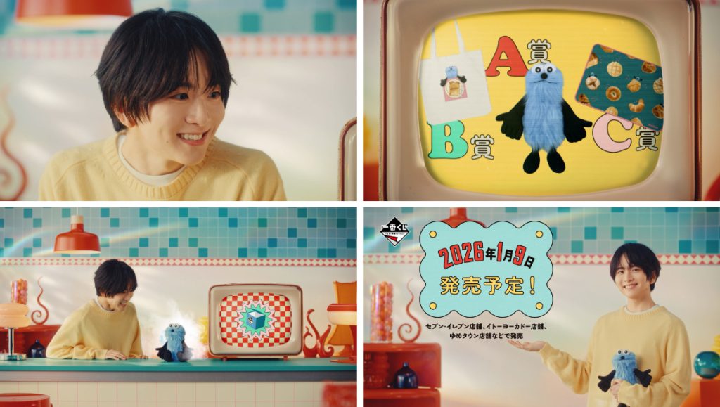 俳優・板垣李光人が出演する新WEB CM「パペットスンスンの一番くじ」15秒ショートVer.が公開された。SNSでもじわじわと人気を高めるキャラクター“パペットスンスン”が「一番くじ」シリーズに初登場するタイミングに合わせ制作された本映像は、短尺ながらも鮮やかなファンタジーを感じさせる仕上がりだ。テレビの向こうにいるはずのスンスンが、ふとした瞬間に現実世界へリンクし、板垣の前に姿を現す──その境界線の曖昧さが、レトロな世界観と相まって独特の温度感をつくり出している。