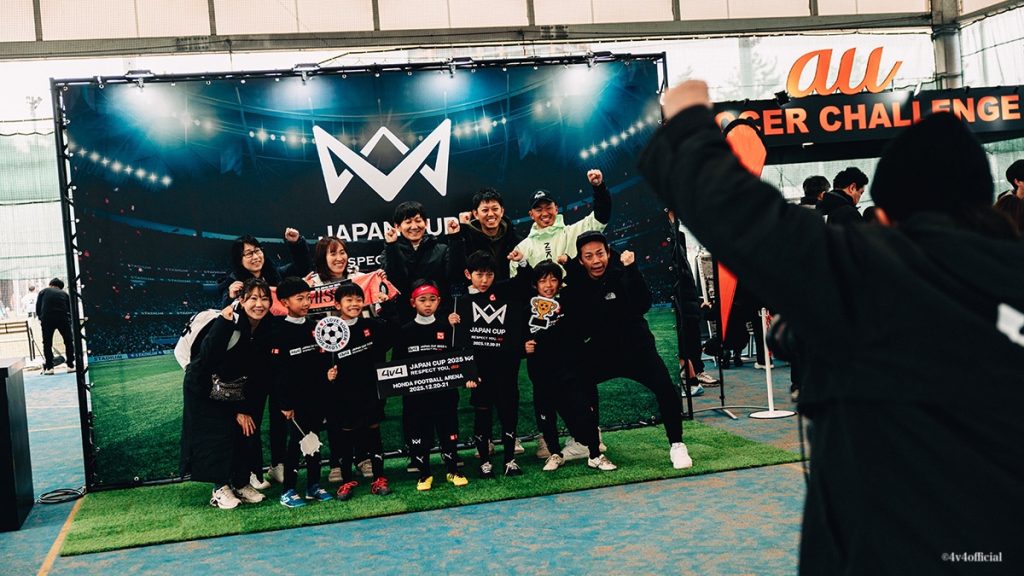 KDDI株式会社は、育成年代向けの4人制サッカー「4v4」を運営するNow Do株式会社と共催し、4人制サッカーの全国大会「4v4 JAPAN CUP 2025 RESPECT YOU, au(以下、JAPAN CUP)」を開催。12月20日・21日には、千葉県のZOZOPARK HONDA Football Areaにてグループステージが行われ、全国各地から集まった精鋭たちが熱戦を繰り広げた。