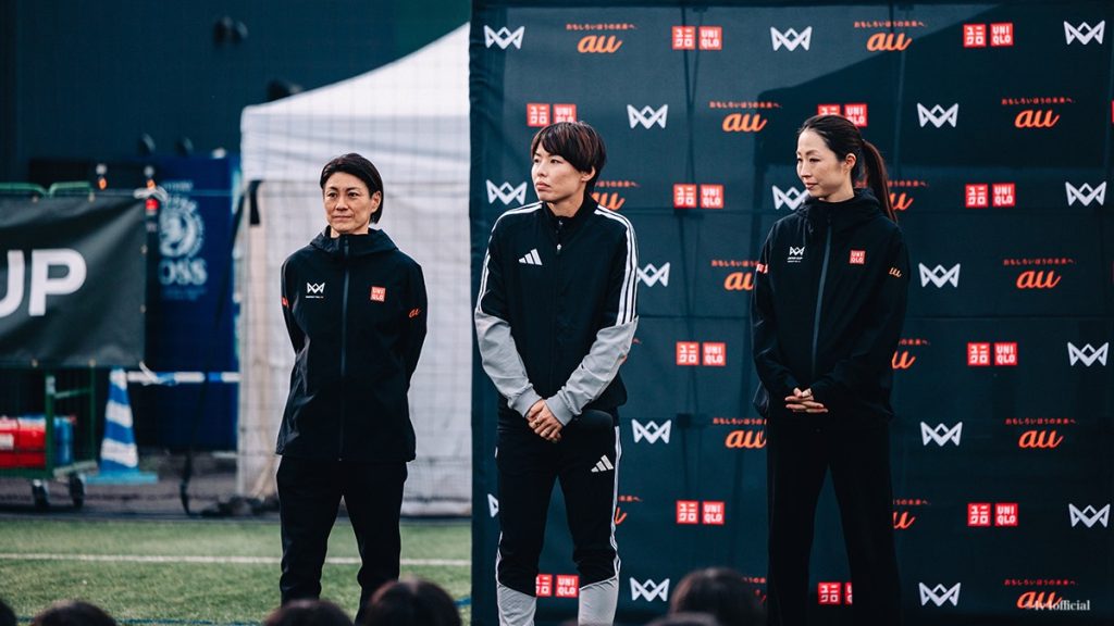 続いて、女子サッカー界からのスペシャルゲストとして、一般社団法人「なでしこケア」から近賀ゆかり氏、熊谷紗希選手、大滝麻未氏が登場した。「なでしこケア」は女子選手によって作られた、キャリア支援や子どもたちのために活動するコミュニティだ。