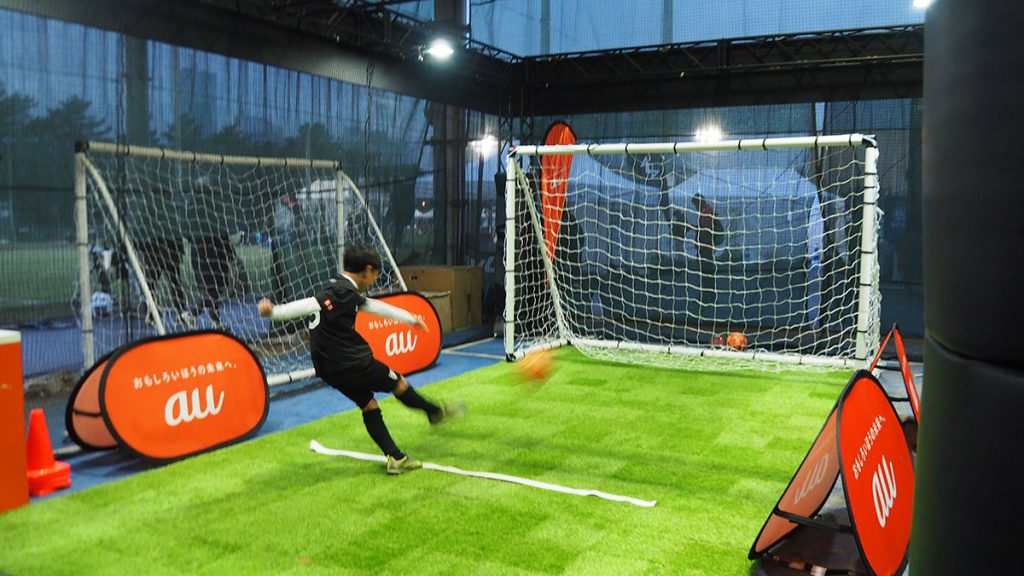 特に人気を集めていたのが、自分のキック力を試せるシュートスピードコンテストだ。ボールを2回蹴って最高速度を計測し、U10は時速70km以上、U12は時速80km以上という「Mission」をクリアすると、先着50名に「4v4オリジナルラバーバンド」がプレゼントされるとあって、子どもたちは渾身の力を込めてシュートを放っていた。