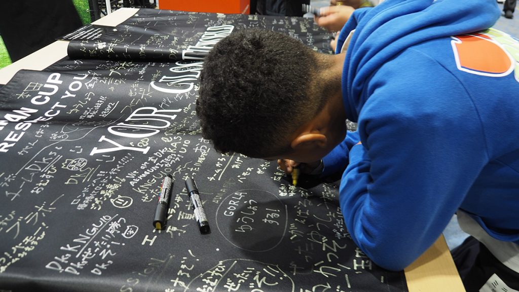 また、12月25日のファイナル会場で掲出される横断幕への寄せ書きコーナーも設置された。選手たちは「優勝する!」「全力で楽しむ」といった決意や応援のメッセージを書き込み、最終決戦の地へと思いを馳せていた。