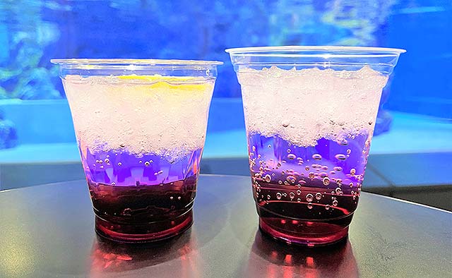 すみペン一番のモテ女「フジ」をイメージし、ピンクレモンシロップとブルーハワイシロップで魅惑の色合いに。