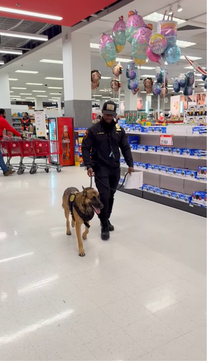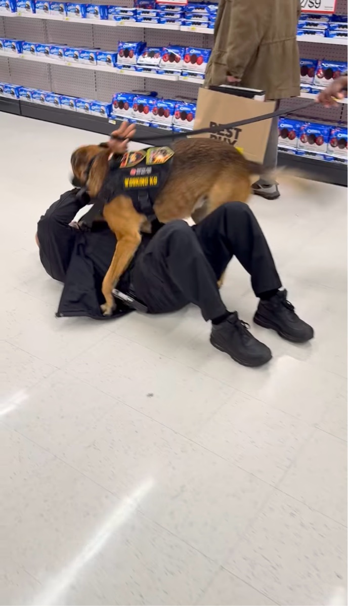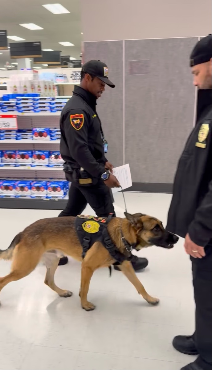 そこには、警備員とともに店内の巡回を行う頼もしい警備犬の姿がありました。