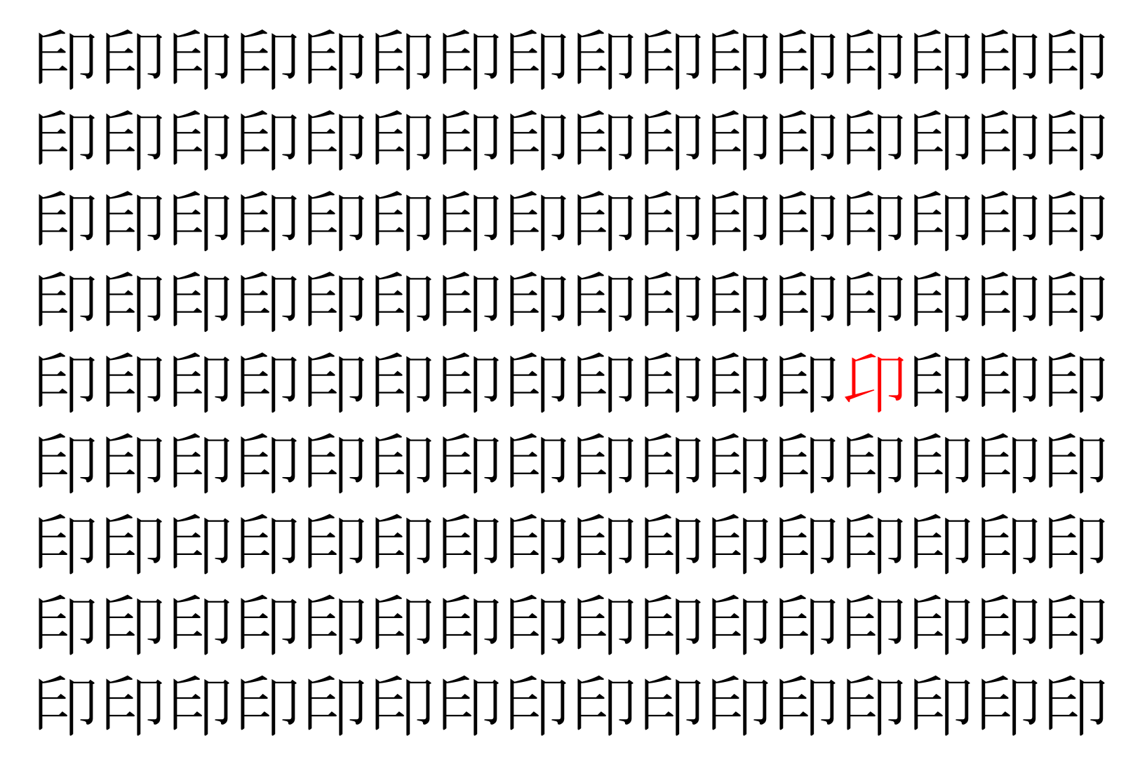 【脳トレ】「印」の中に紛れて1つ違う文字がある!?あなたは何秒で探し出せるかな??【違う文字を探せ!】