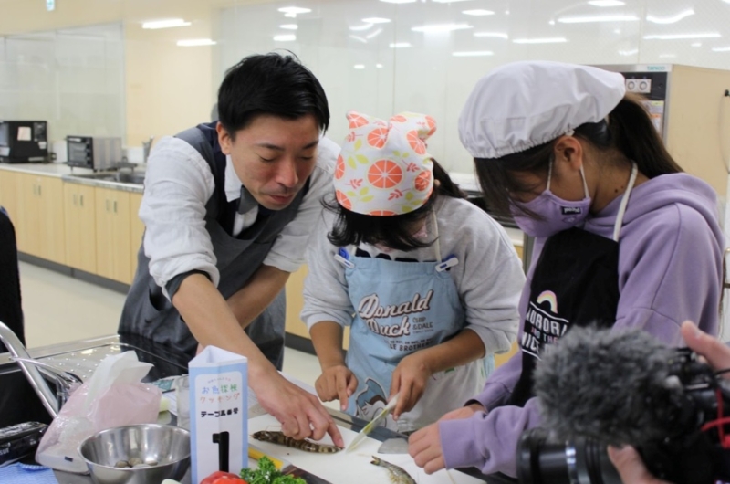 料理教室というと、どうしても「作る」「食べる」に注目が集まりがちですが、その前段階として、魚を取り巻く環境や仕事を知る時間が組み込まれている点は印象的です。食べ物の背景を知ったうえで調理に進むことで、体験の深さが一段増していく構成になっていました。