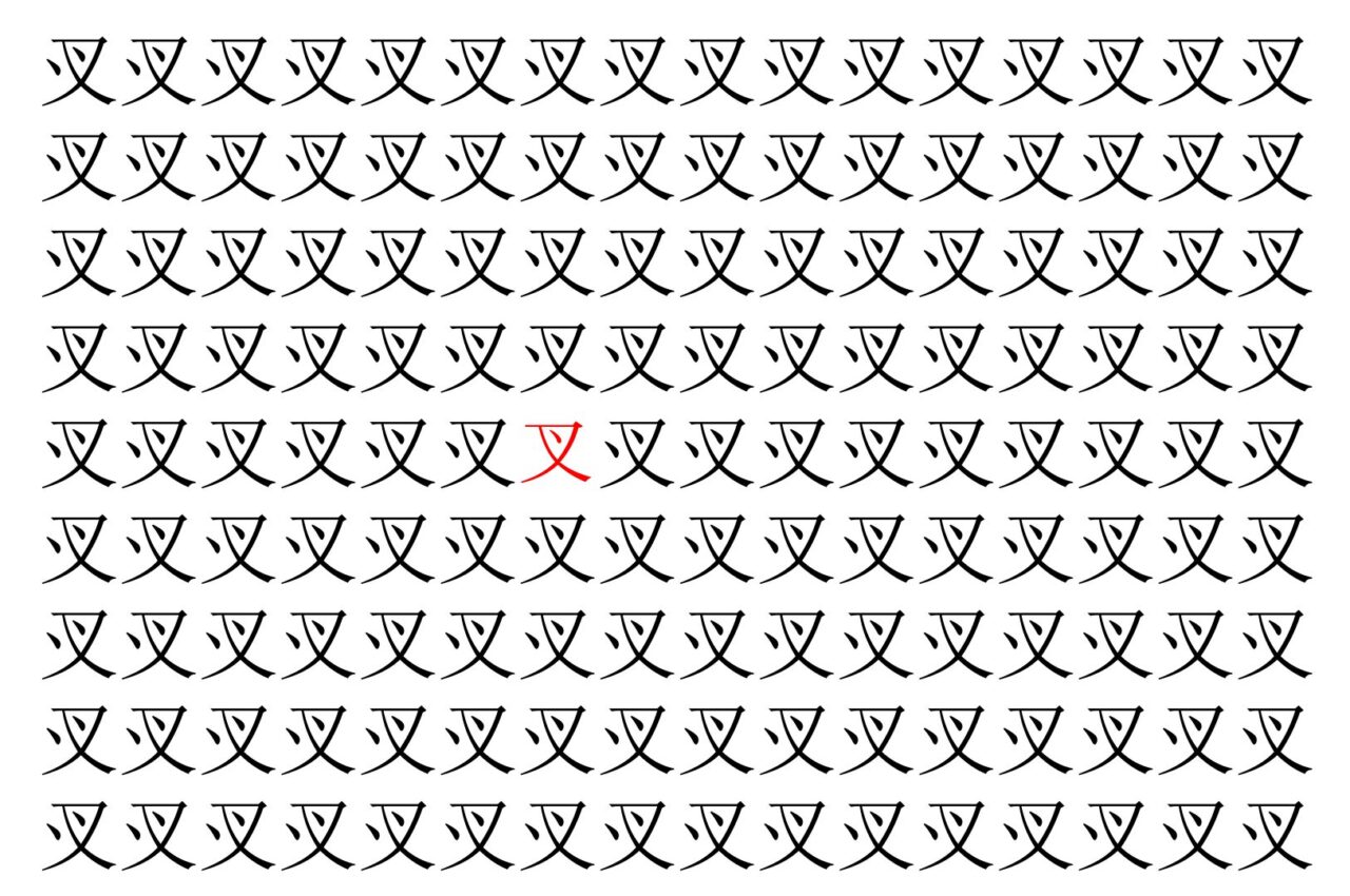 【脳トレ】「㕚」の中に紛れて1つ違う文字がある!?あなたは何秒で探し出せるかな??【違う文字を探せ!】