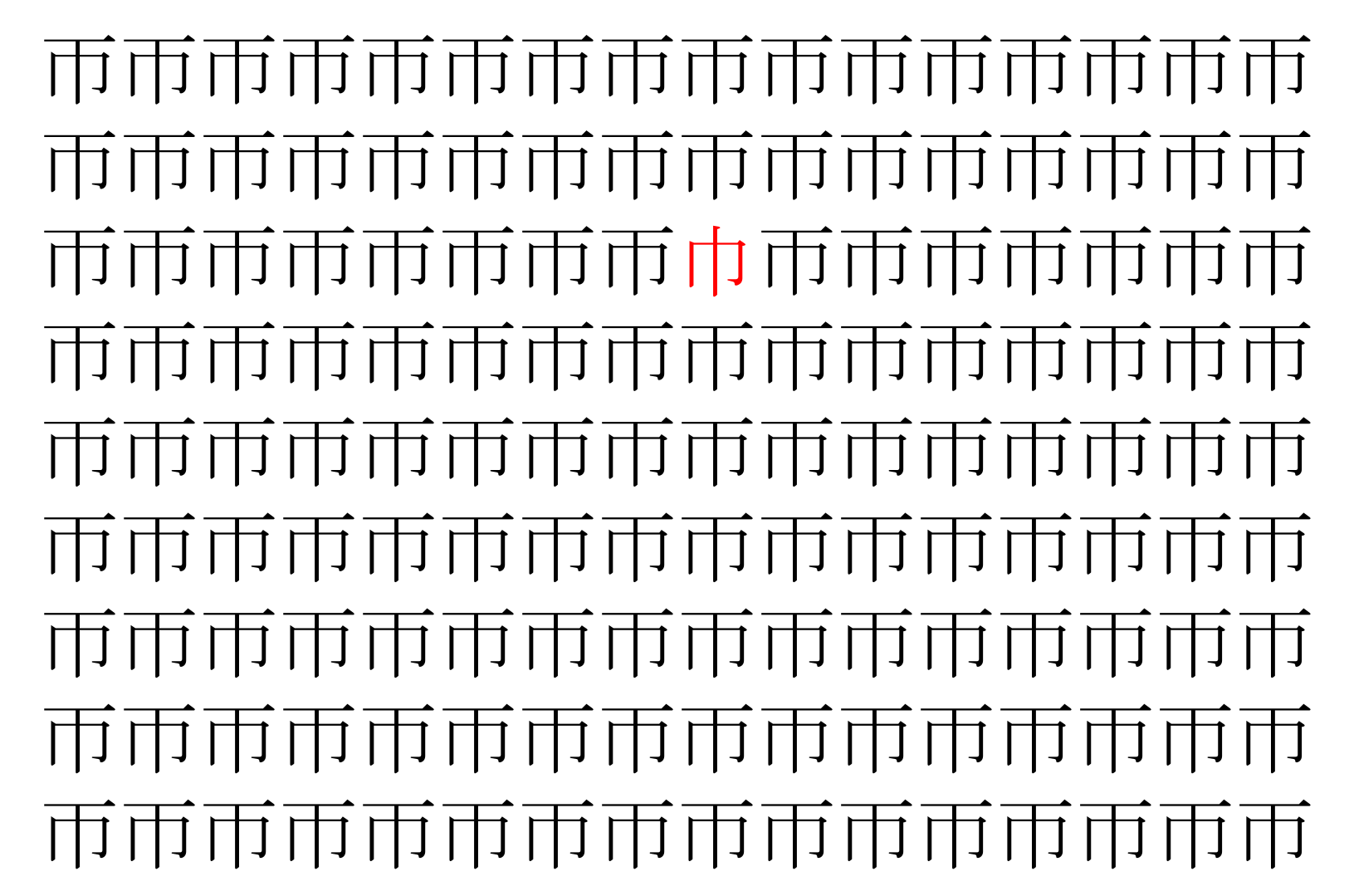 画像の中には、「帀」という漢字が縦に9行、横に16個並んでいます。
