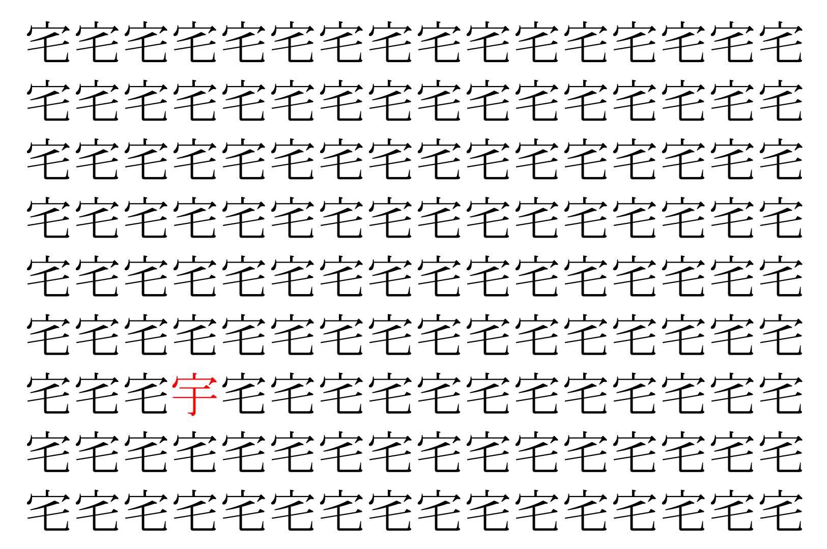 画像の中には、「宅」という漢字が縦に9行、横に16個並んでいます。