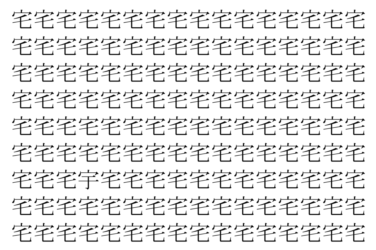 【脳トレ】「宅」の中に紛れて1つ違う文字がある!?あなたは何秒で探し出せるかな??【違う文字を探せ!】