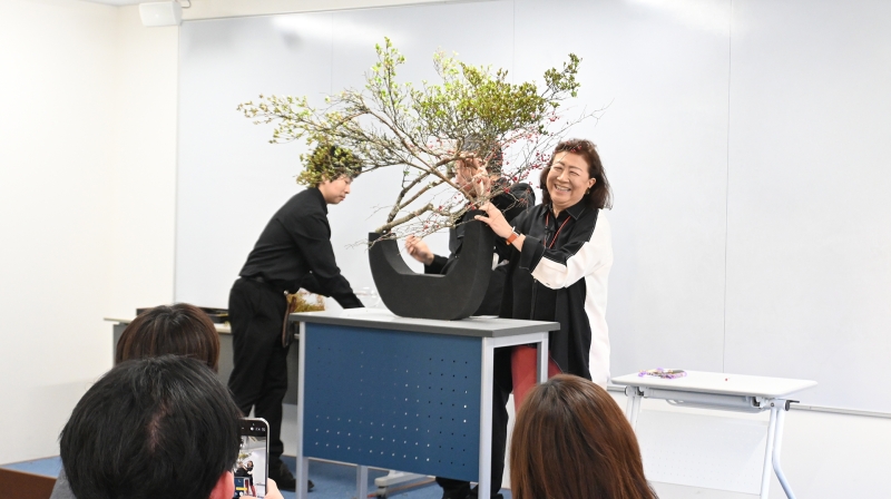 ビジネスの世界では、正解のない問いに向き合い続けることが日常です。だからこそ、型を学びながらも型にとらわれない草月流の思想が、経営を学ぶ場と自然に結びついたのではないでしょうか。大学という知の場で行われた今回の講義は、伝統文化が現代社会と静かにつながる一つの象徴的な出来事だったように感じられます。