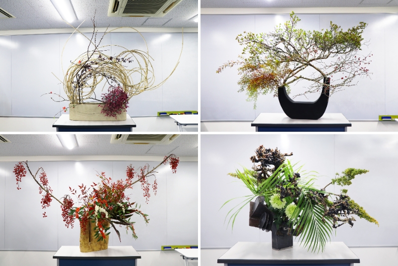 また、草月流のいけばなは、選択の連続でもあります。どの枝を残すのか、どこに花を配置するか、色や器をどう組み合わせるのか。その空間で、誰が、どのように見るのかまで含めて考えることが求められます。正解が一つではない中で、自分なりの答えを選び取っていく。その積み重ねが、作品として形になります。