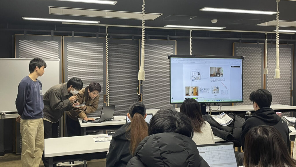こうしたデジタルツールの活用により、経験の差に左右されにくく、短い期間でも「形のある住宅プラン」を完成させられる環境が整っていました。授業全体を通して、学生が建築の仕事を具体的にイメージできる設計体験が重視されていた点が印象的です。