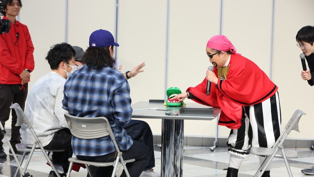 「トイゲームマスターの私が相手だ!」と意気込んだキンタロー。さんだったが、試合が始まるとワニに好かれているかのように頻繁に噛まれる展開に。「なんでだよ!」「怖い怖い!」と絶叫し、自身のネタである“フライングゲット”のポーズを取る余裕もなく完敗。「悔しいです!」と叫ぶキンタロー。さんに対し、ひしんたいは「キンタロー。さんに会いに来たので、勝てて幸せです」と喜びを爆発させた。