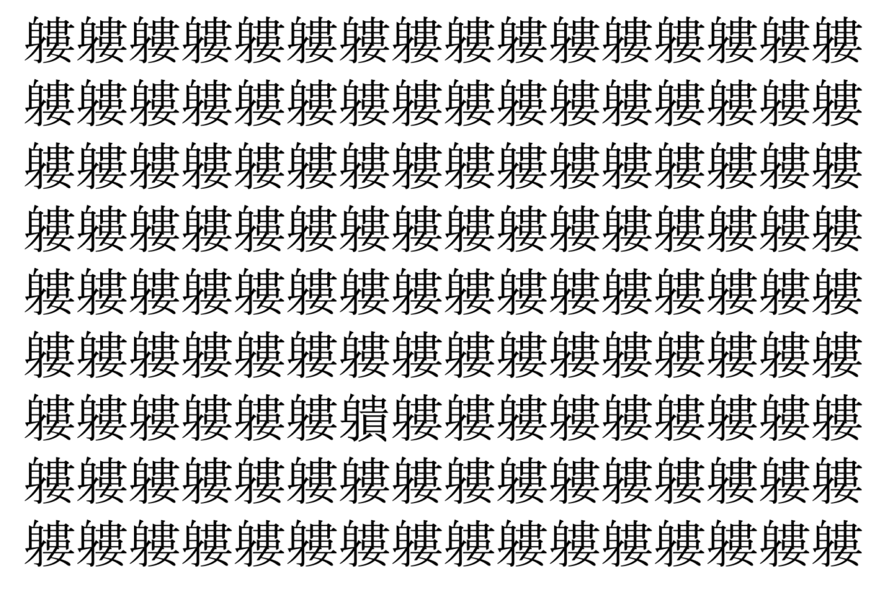 【脳トレ】「軁」の中に紛れて1つ違う文字がある!?あなたは何秒で探し出せるかな??【違う文字を探せ!】