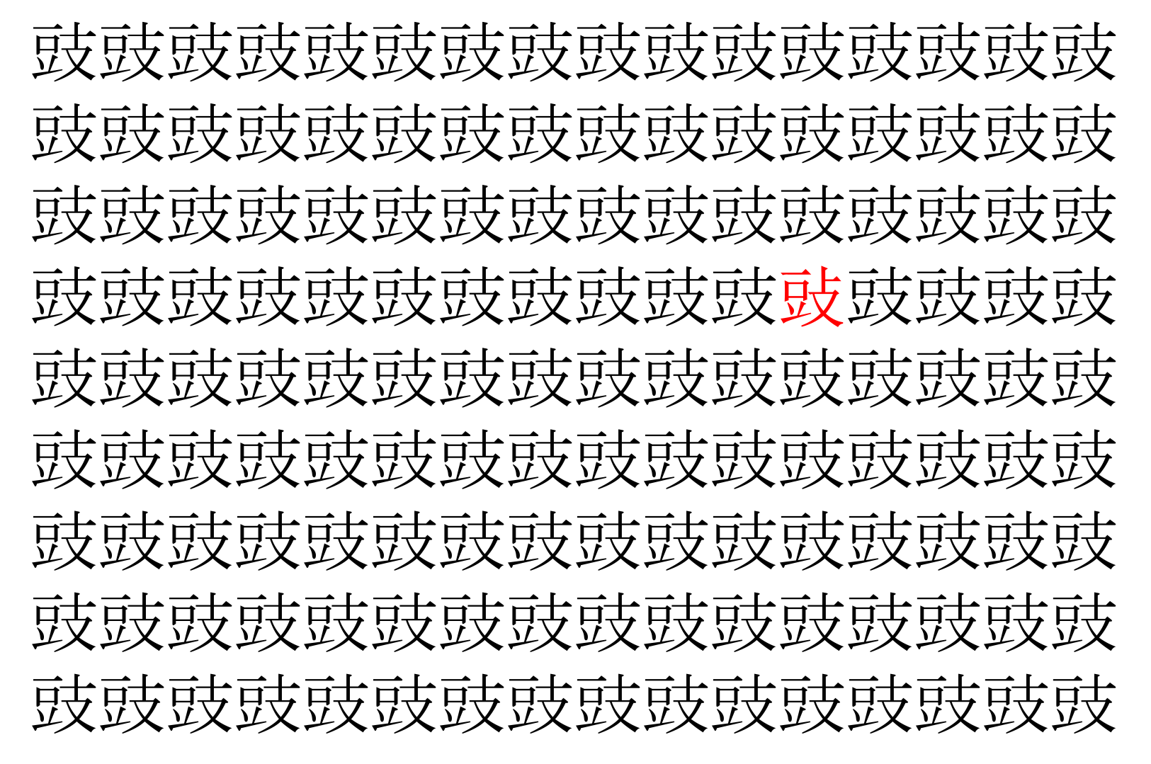 【脳トレ】「豉」の中に紛れて1つ違う文字がある!?あなたは何秒で探し出せるかな??【違う文字を探せ!】