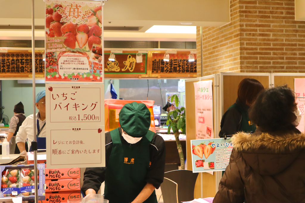 いちご詰め放題や早食い大会が体験できるのは、東京ソラマチのウエストヤード2階 フードマルシェ特設会場。