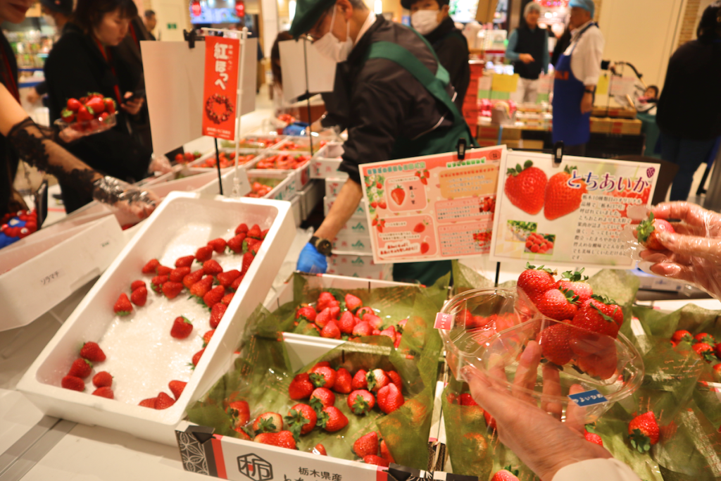 やよいひめ、とちあいか、紅ほっぺのブランドいちごをパックに好きなだけ詰めることのできるとあって、毎回大人気の企画だそうだ。
