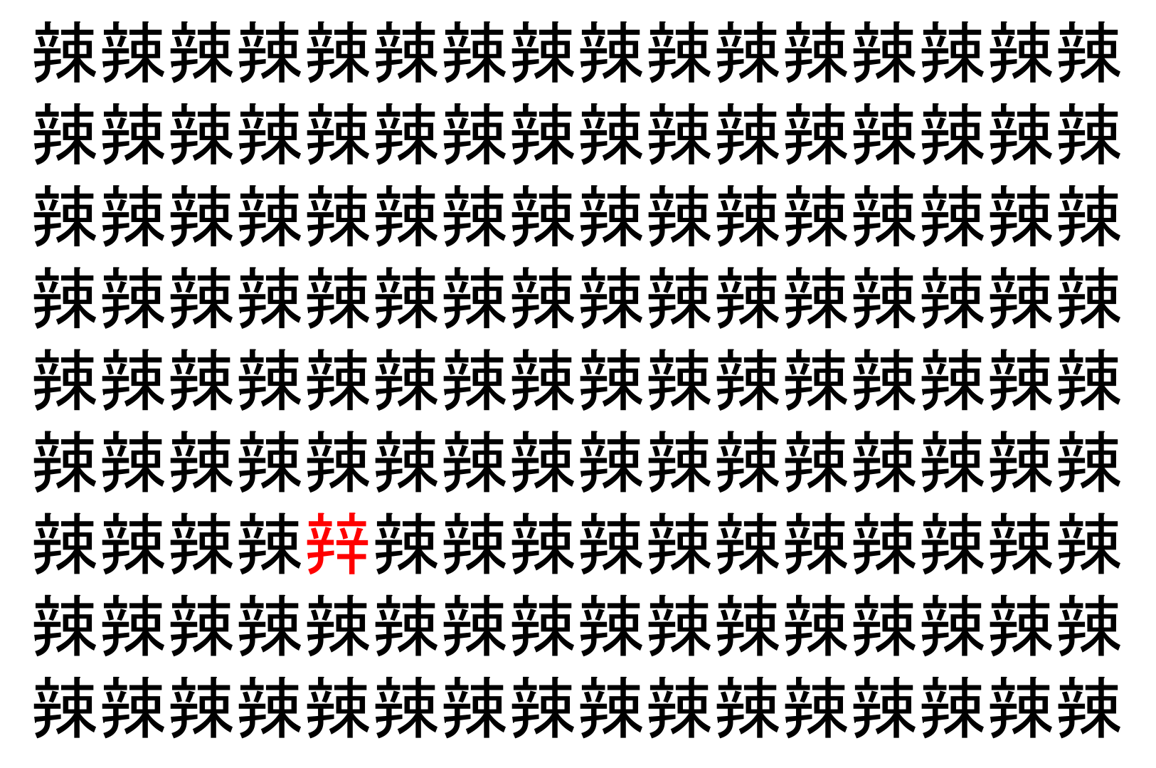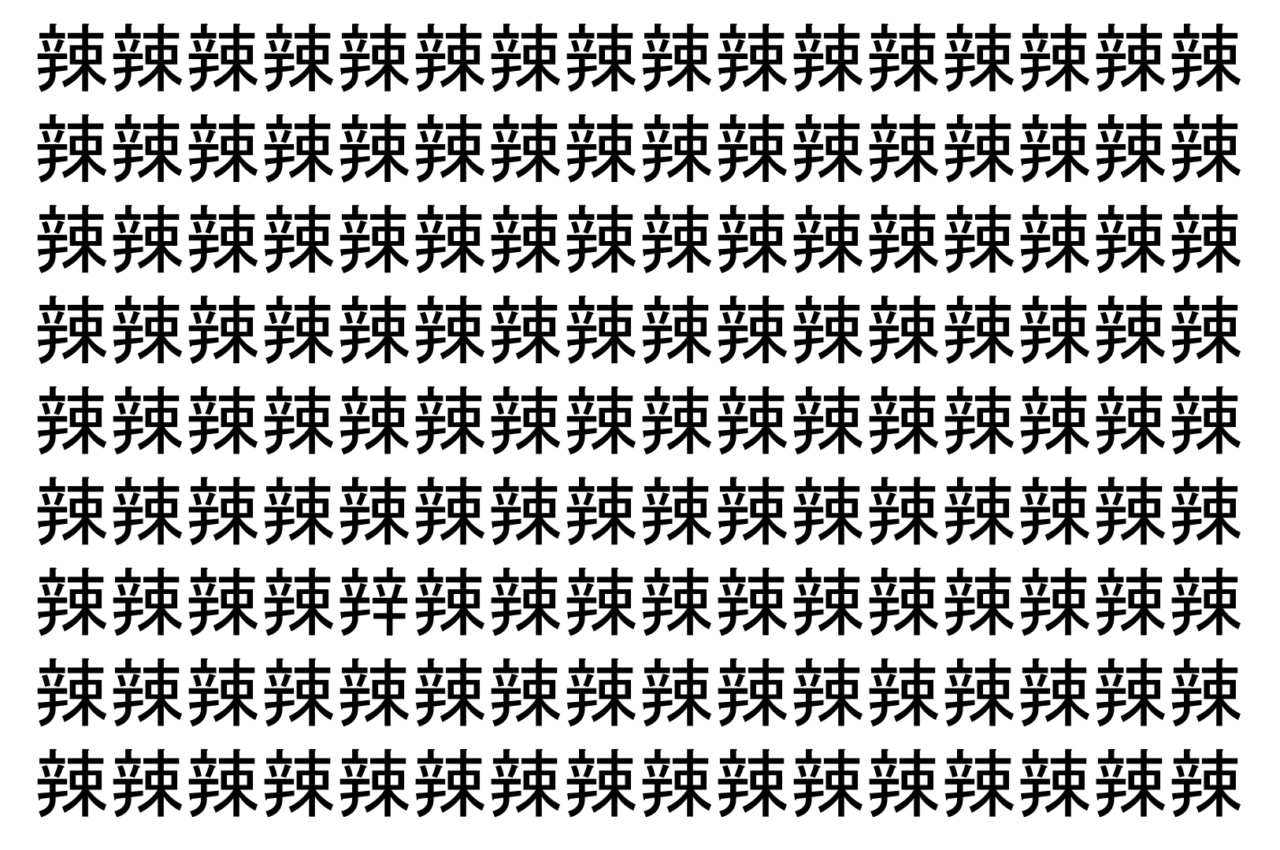 【脳トレ】「辣」の中に紛れて1つ違う文字がある!?あなたは何秒で探し出せるかな??【違う文字を探せ!】